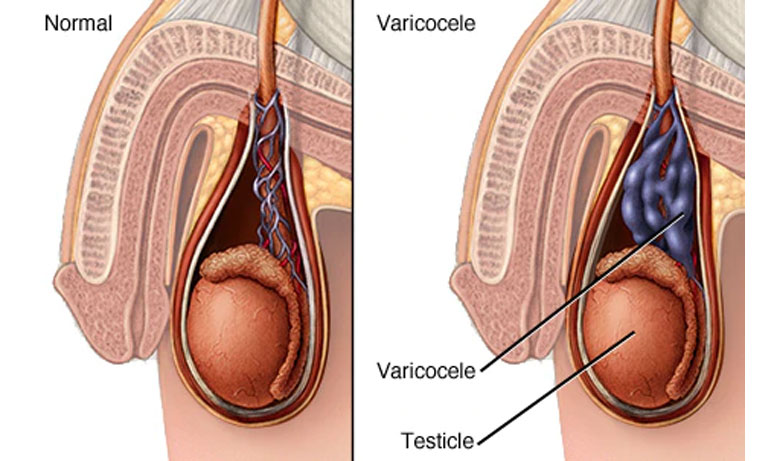 There is an association between varicoceles and infertility. The incidence of varicocele increases to 30 percent in infertile couples. Decreased sperm count, decreased motility of sperm, and an increase in the number of deformed sperm are related to varicoceles. Some experts believe that blocked and enlarged veins around the testes, called varicoceles, cause infertility by raising the temperature in the scrotum and decreasing sperm production